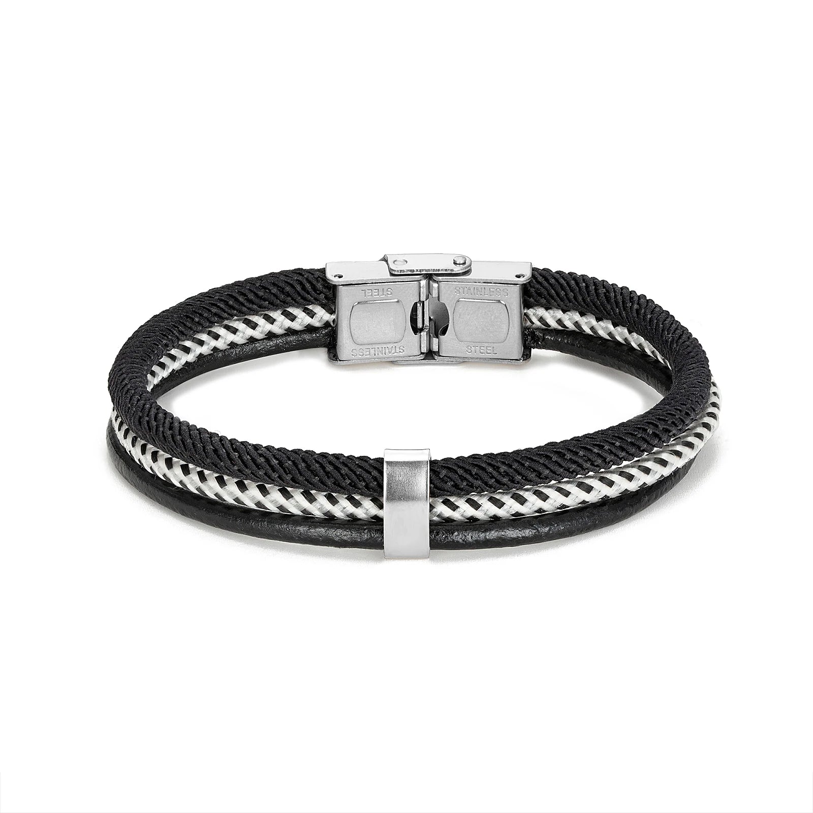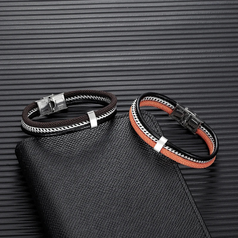 MKENDN Men's Leather Bracelet Nautical Double Strand Stainless Steel U shape Clasp