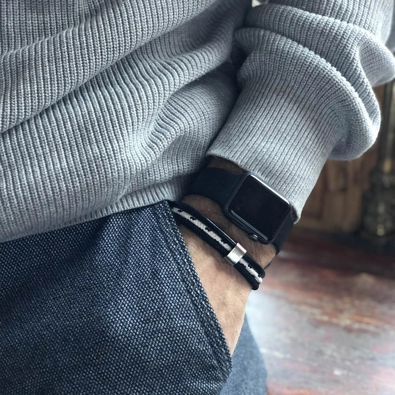 MKENDN Men's Black U Shape Shackle Nautical Double Strand Rope Bracelet Outdoor