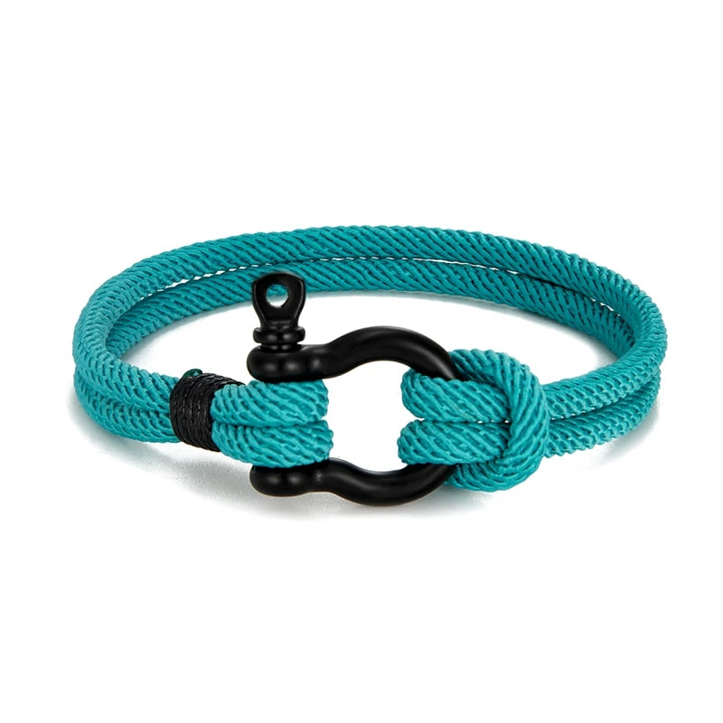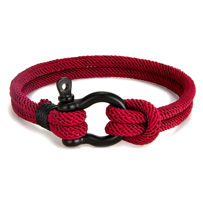 MKENDN Men's Nautical Double Strand U shape Shackle Survival Rope Bracelet Women