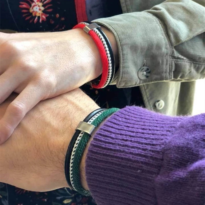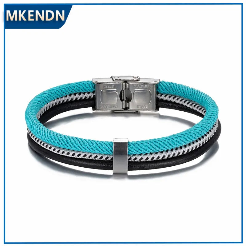 MKENDN Colorful Nautical Survival Rope leather Cord Bracelet Men's Surfer Leather