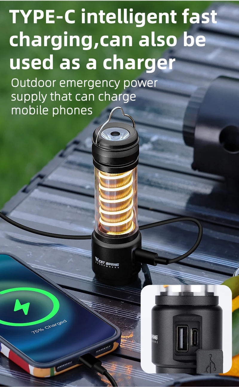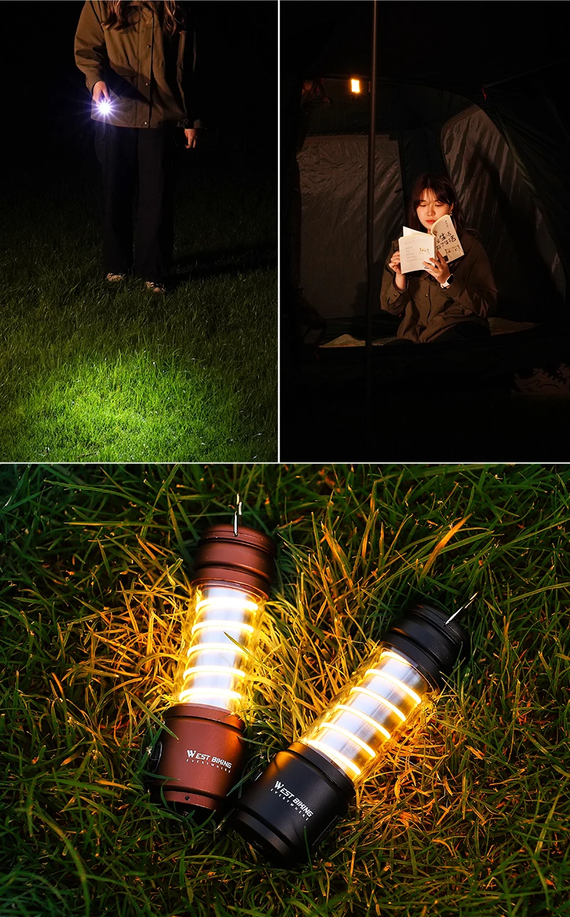 WEST BIKING LED Camping Light USB Rechargeable Bulb For Outdoor Tent Lamp Portable Lantern Emergency Lights Hiking Flashlight