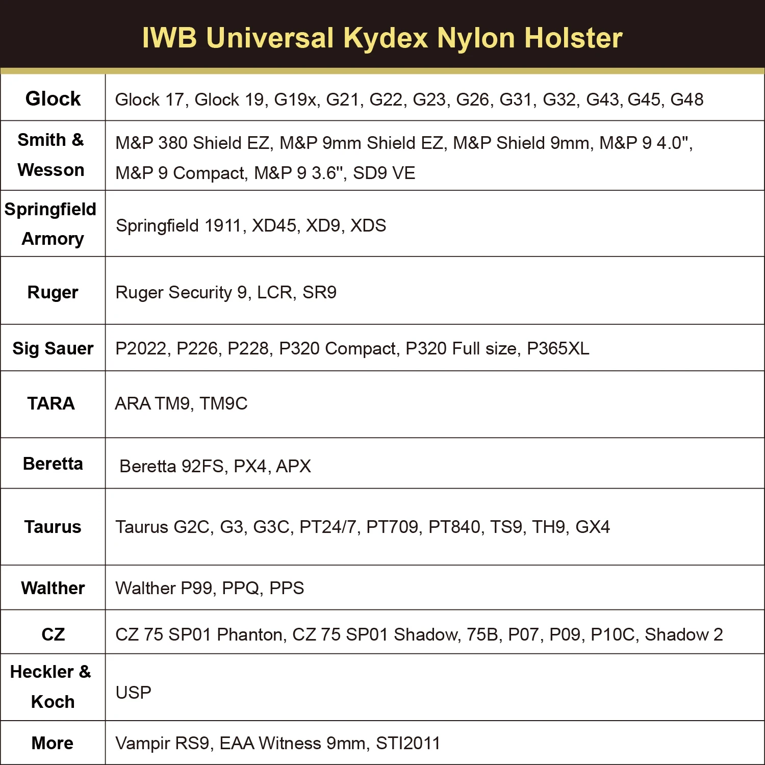 Gun&Flower Kydex and Nylon Hybrid Universal IWB Holster with Red Dot Fits for Vatious Gun Models