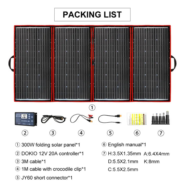 Dokio 18V 80W 160W 100W 200W Portable Foldable Solar Panel With 12V Controller