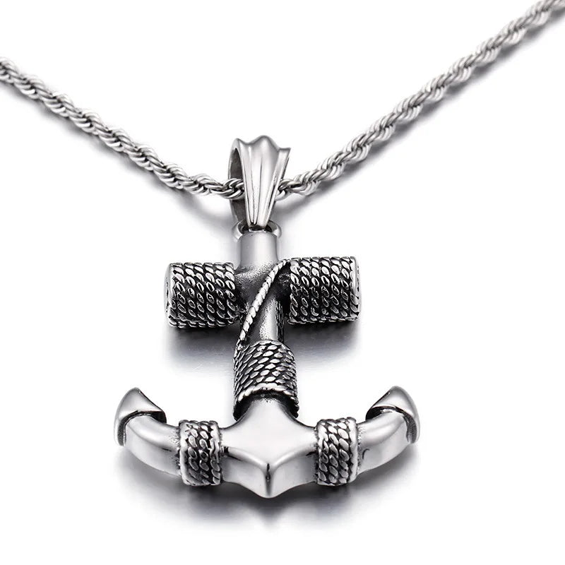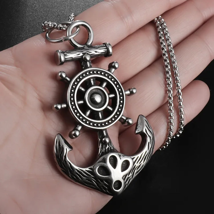 Hip Hop Punk Captain Wheel with Anchor Nautical Pendant Necklace Men's Fashion