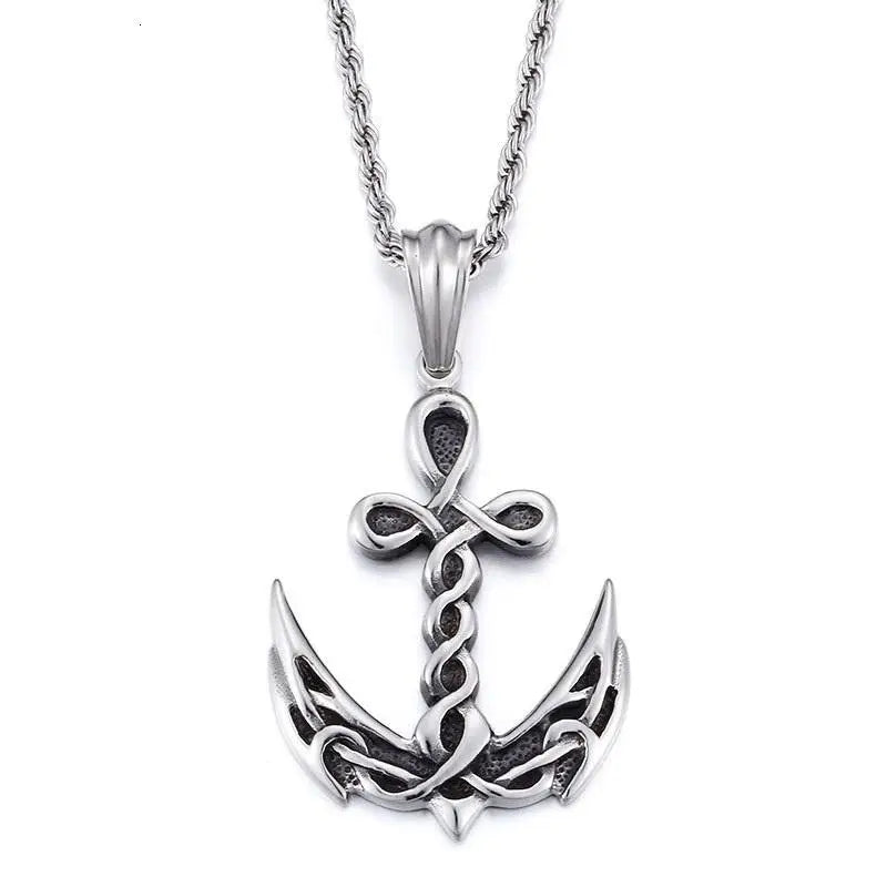 Hip Hop Punk Captain Wheel with Anchor Nautical Pendant Necklace Men's Fashion Nautical Jewelry
