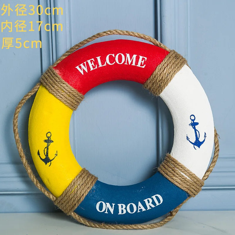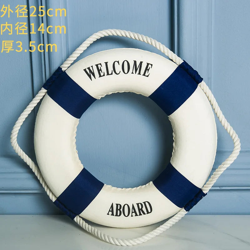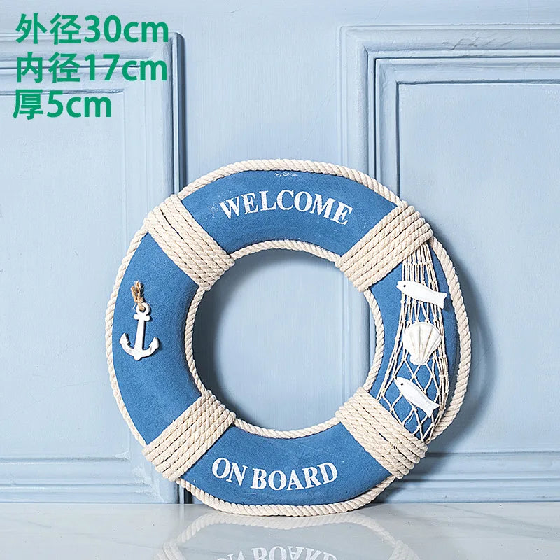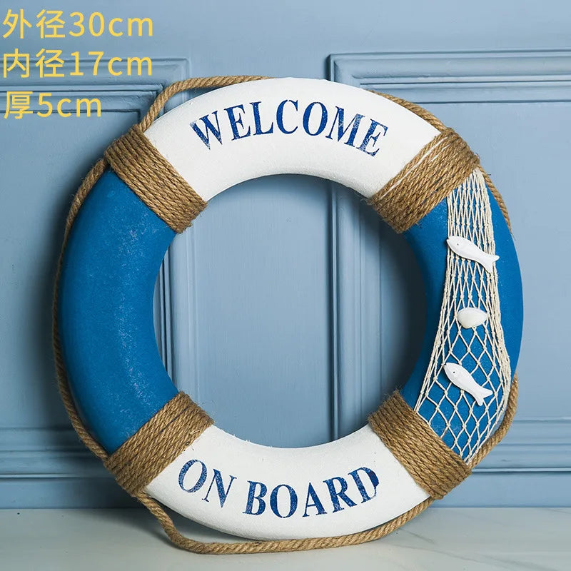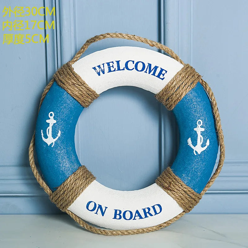 Mediterranean Style Wood Nautical Welcome Board Blue White Lifebuoy for Bar Window Background Wall Pendant Kids Room Home Decor