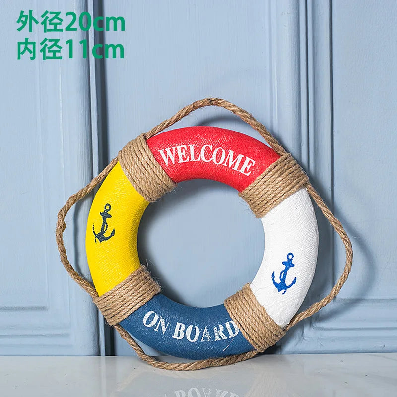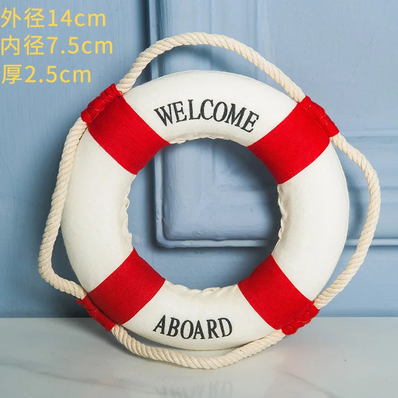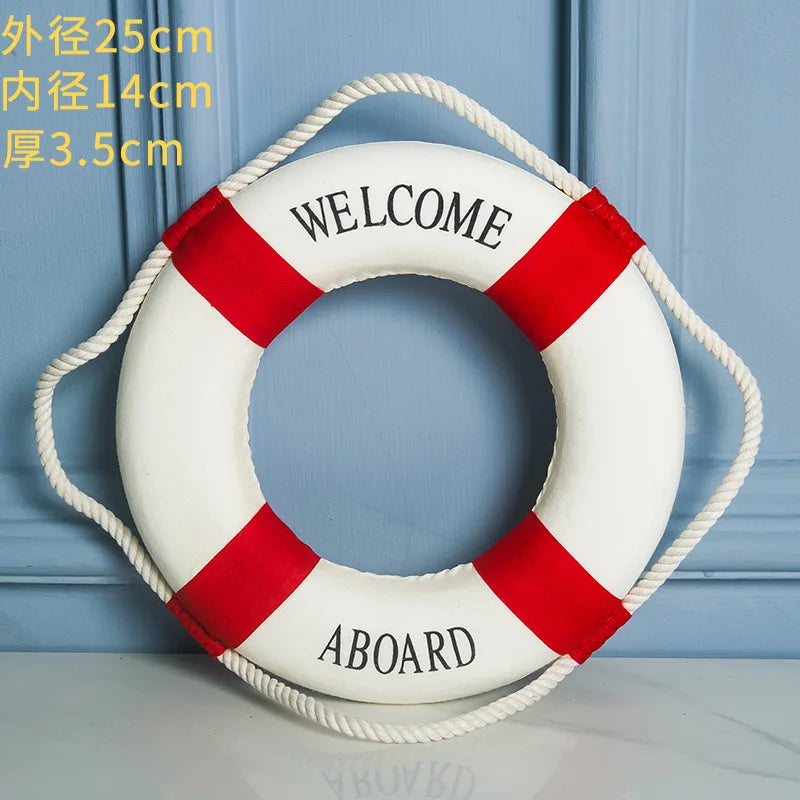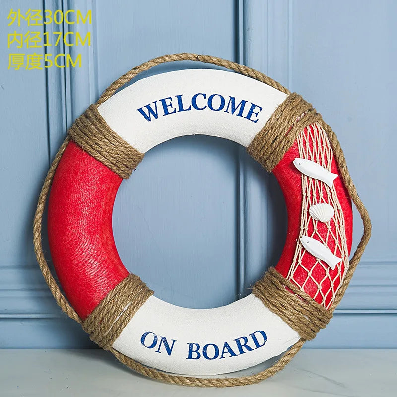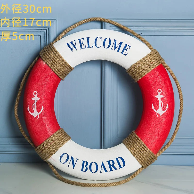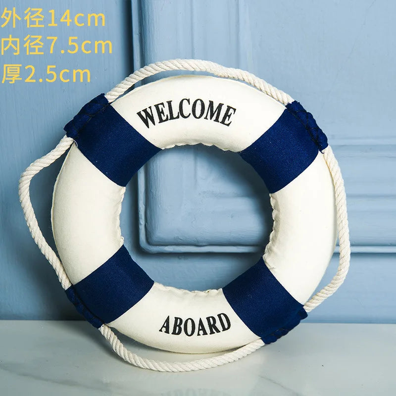 Mediterranean Style Wood Nautical Welcome Board Blue White Lifebuoy for Bar Window Background Wall Pendant Kids Room Home Decor
