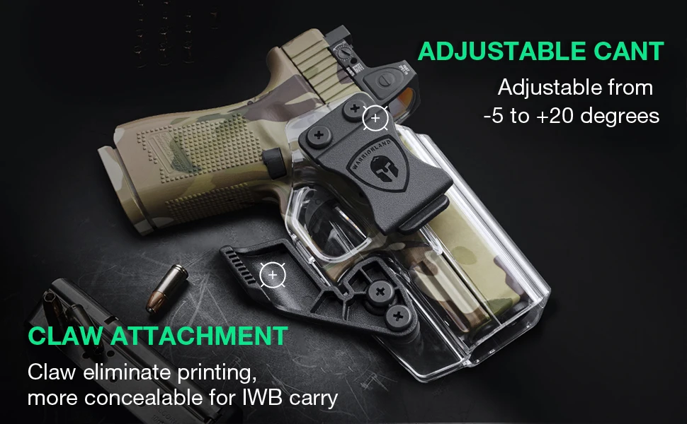 · ADJUSTABLE CANT & RETENTION: The Cant are adjustable from -5 to +20 Degrees - The retention are adjustable for suitable quick draw and holster tightness - Super suitable for daily concealed carry